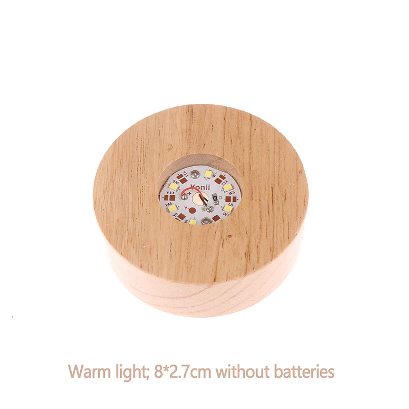 Battery Operated 8/10cm Round Wooden LED Light Dispaly Base Stand Holder Table Night Lamp Base Crystal Glass Art Ornaments