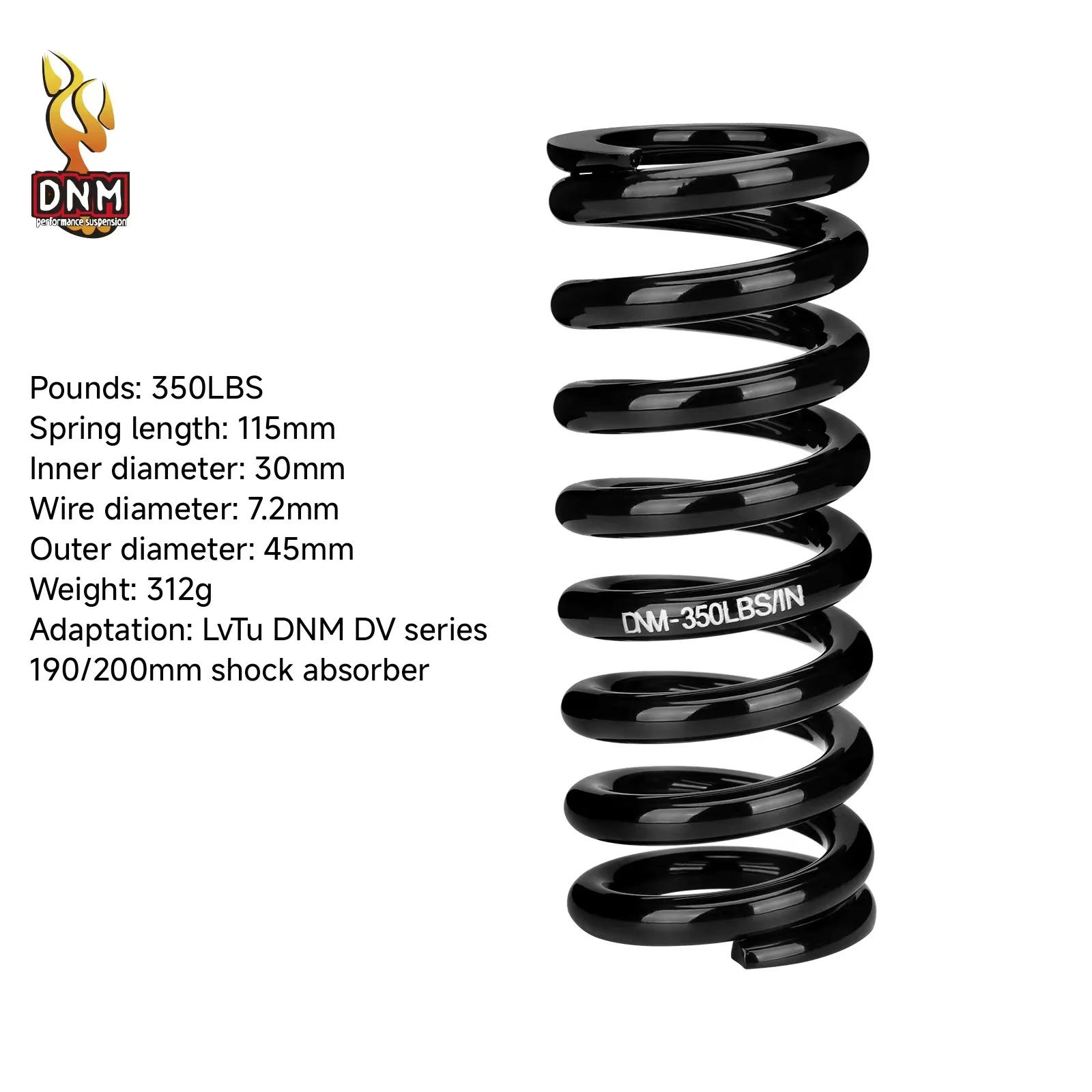 Bicycle Rear Shock Absorber Spring DNM DV22AR 30mm Inner Diameter Spring 350-1000LBS Applicable To DNM DV Series Shock Absorber