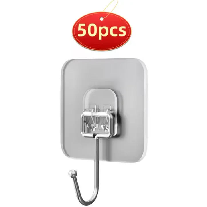 Big Size Hook Self-Adhesive PVC Stainless Steel Transparent Multi-Purpose Wall Holder Door Rack Kitchen Storage Organizer Home