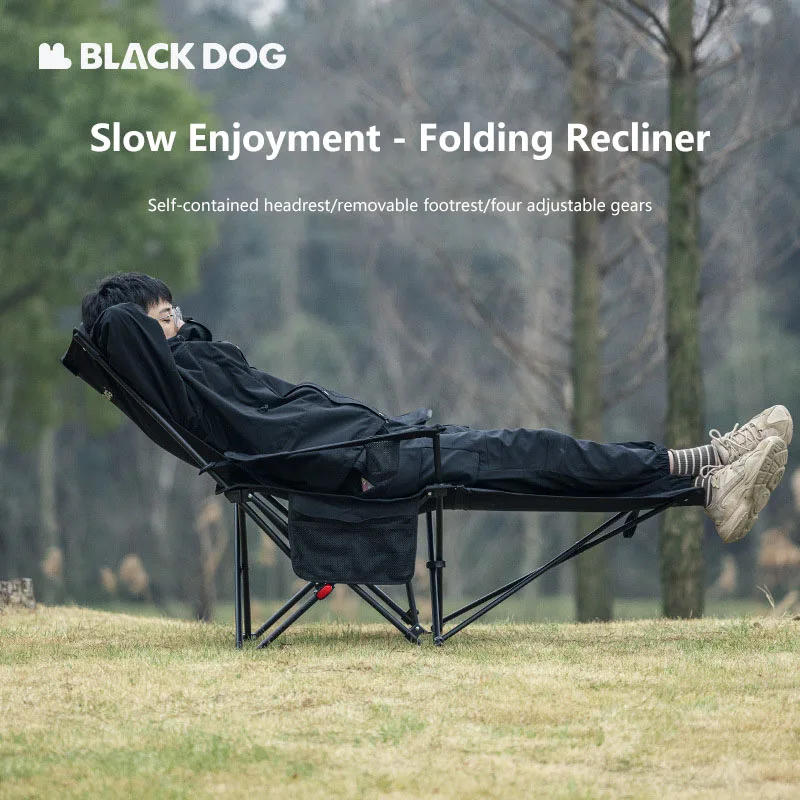 Blackdog Camping Chair Folding Recliner Portable Adjustable Lounger for Outdoor Picnic With Removable Headrest Pillow