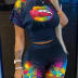 Casual O-neck Short Sleeve T-shirt Shorts Set Office Lady Summer Letter Print Tops Solid Shorts Two Piece Set Women Outfit 2023