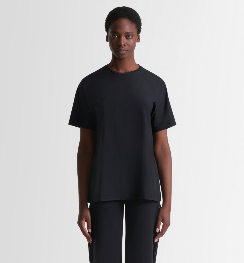 Fusalp redesigned the classic black T-shirt featuring a crew neck, raglan sleeve, and side slits, crafted from Sensitive® knit and stretch Calais lace. TECHNICAL DETAILS Bi-fabrics short sleeves T-shirt Mix of sensitive stretch knit & stretch lace Round collar Raglan sleeves Side slits FABRICS Bi-fabric short sleeve T-shirt made of Sensitive® knit fabric and stretch lace.