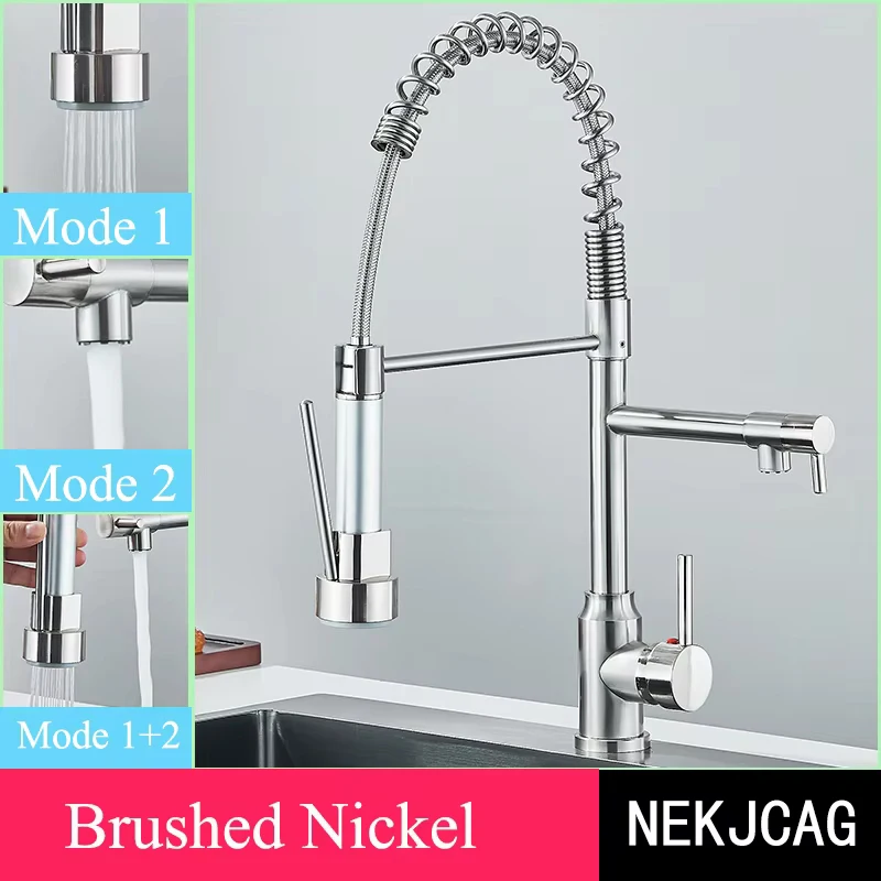 Chrome Kitchen Faucet Spring 360° Pull Down Sprayer Hot Cold Water Mixer Tap Deck Mounted Dual Spout Nozzle Faucets Crane