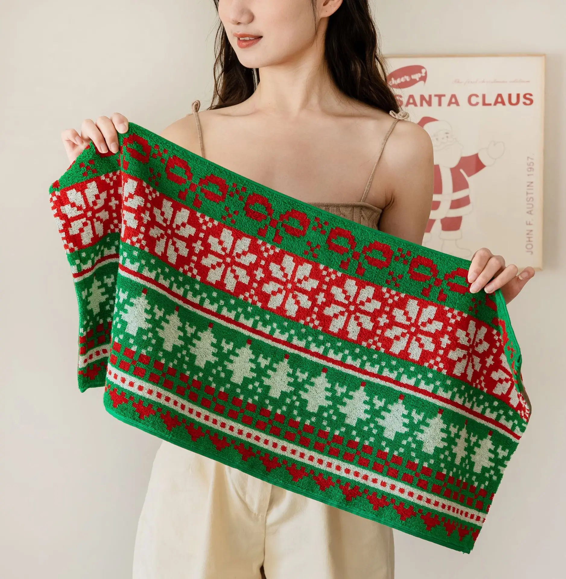 Cotton Bath Towels Set for Christmas, Absorbent Face Towel, Bathroom Accessories, Home Spa Hair, Large Size 70x140cm, Soft