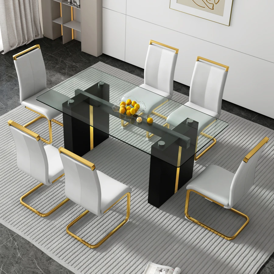ectangular glass table, which can accommodate 6-8 people, equipped with 0.39-inch tempered glass table top and large MDF table