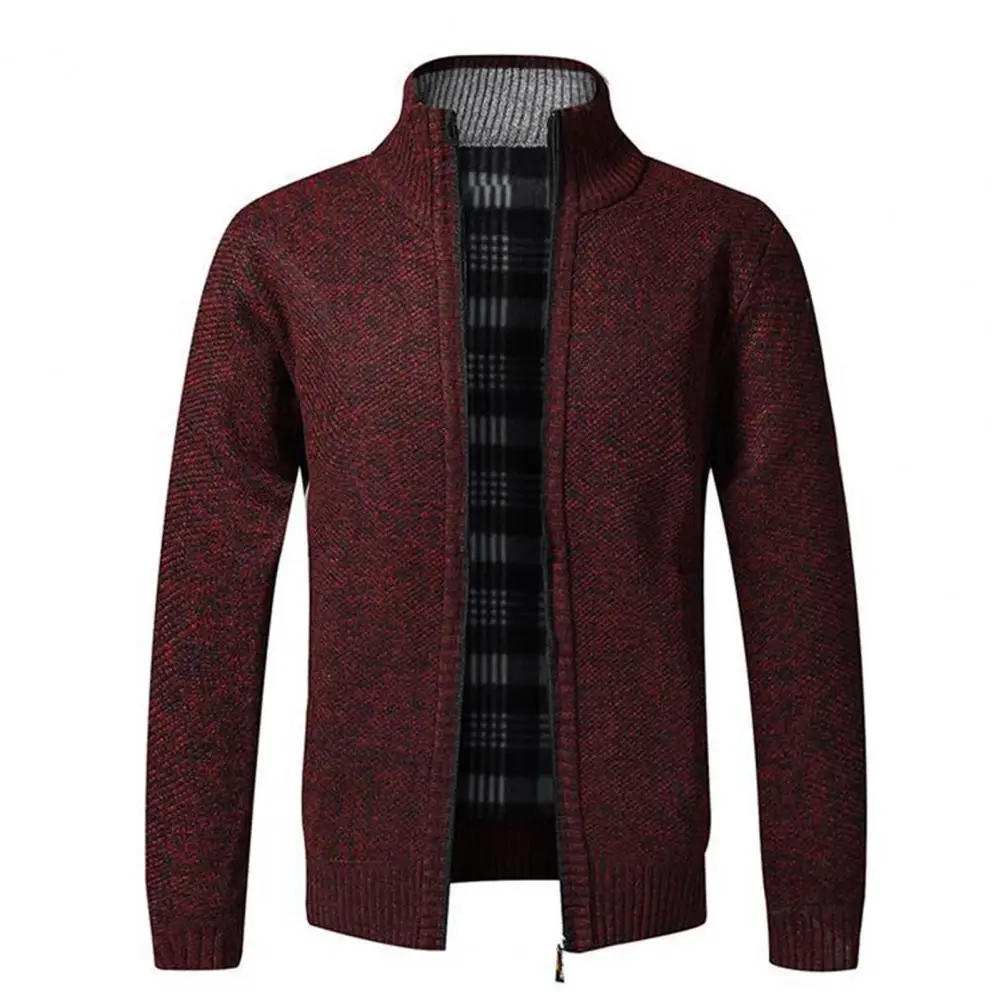 High Quality New Autumn Winter Men's Knitted Jacket Slim Fit Stand Collar Zipper Jacket Men Solid Cotton Thick Warm Cardigan Men