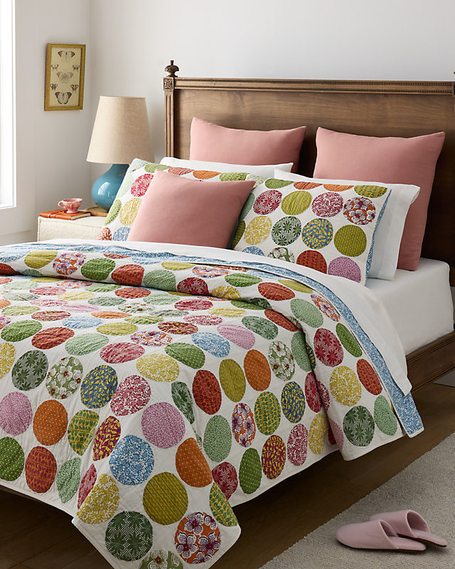 Cheery circular patches of retro prints in a multitude of modern color combinations make the Johanna Quilt one of our most popular layers. Lightweight for season-spanning versatility, it's designed to mix and match with a range of bedding colors and styles.