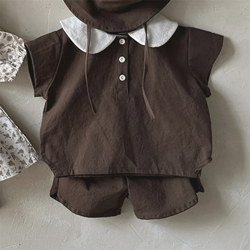 Korean version of ins boys and girls Cotton Clothes Set Shirt+Shorts 2PCS Fashion Simple Turn-down Collar Outwear Baby Clothes0-