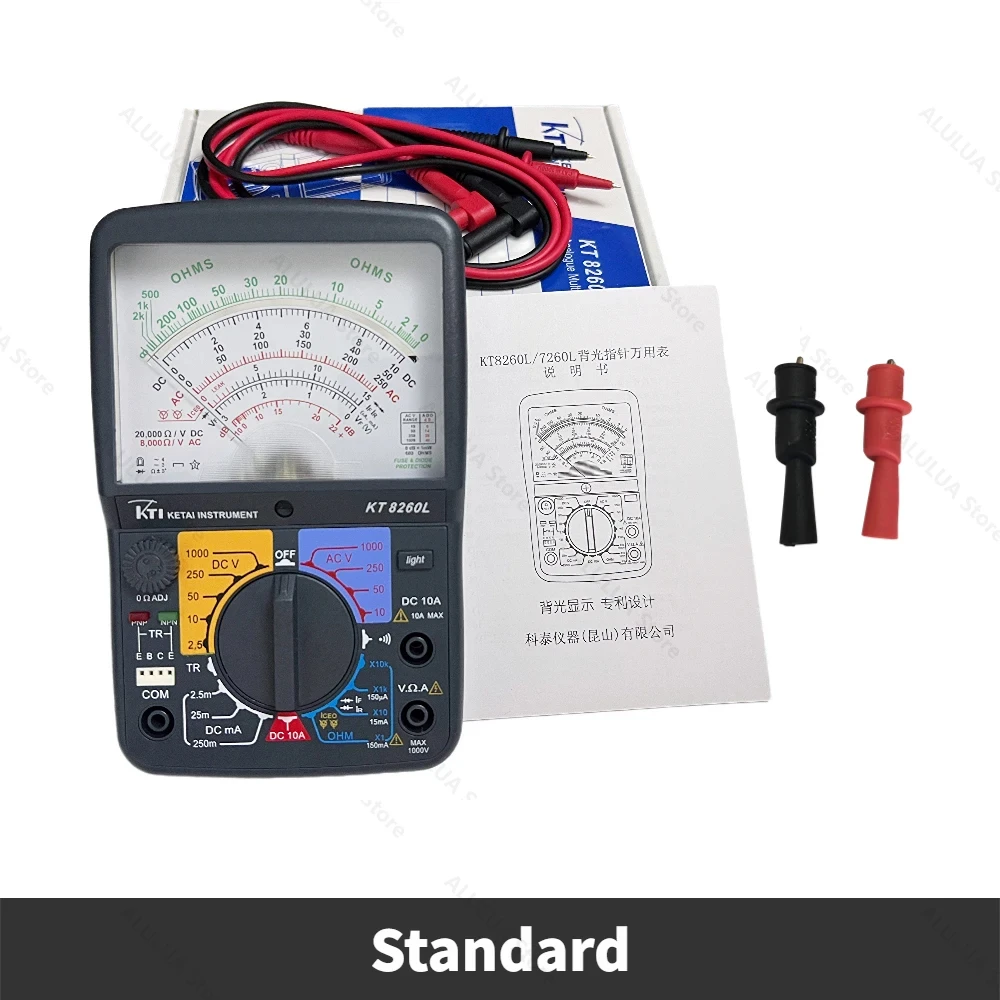 KTI Backlight Pointer Multi Meter AC DC Voltage 1000V Analog Multimeter KT8260L Professionele with Bag Tester Multimeters Sale Specification: Brand new Size: approx 150*102*45mm Voltage: DC 12V (1 x 9V + 2 x 1) Measurement function: ACV, DCV, DCA, Ω, Polarity transistor Power supply: UM-3(AA) 1 x 2 6F22 9V x 1 (not included) Fuse: F0/250V Use environment: 0 ℃ to 40 ℃(32°F~104°F), humidity lower than 75% Storage environment: -10 ℃ to 50 ℃(14°F~122°F), humidity lower than 70% Applicable Altitude: 2000 meters above sea point Safety Standards: Comply with EN61010-1 CATIII600V pollutants degree 2 Feature: A multimeter is an digital measuring tool that combines several size applications in a single unit Is a hand-held and useful system for classic faults finding highly precise Can measure ACV, DCV, DCA, electric resistance and polarity transistor trying out High accuracy, excessive sensitivity and stable performance Clearly and stably show information High skill to help overload With backlight design, it's obtainable in the dark It is workable beneath extreme situations Shell is powerful sufficient to stop cracking or breaking, thick dial is agency to assist press, influence or pump Compact length and transportable Easy to hold and function Convenient to apply Durable in use Package included: 1 x Multimeter 2 x Test Pen 1 x Instruction Manual Note:Battery isn't always included!!! Specifications: Brand: KT8260L Size: Approximately 150*102*45mm Voltage Measurement Range: DC 12V (1 x 9V + 2 x 1) Measurement Functions: ACV, DCV, DCA, Ω, Polarity Transistor Power Supply: UM-3(AA) 1 x 2 6F22 9V x 1 (not included) Safety Standards: Comply with EN61010-1 CATIII600V pollution diploma 2 Features: |Multimeter Certification|Multimeter Mv|Digital Multimeter Home Depot| **Precision and Versatility** The KT8260L Backlight Pointer Multimeter is a flexible tool for electric mavens and DIY fans alike With its capability to measure ACV, DCV, DCA, electric resistance, and polarity transistor, it provides a complete vary of electric assessments The multimeter&;s high accuracy and sensitivity make sure precise readings, whereas its stable functionality ensures dependable outcomes The clean and secure display guarantees that you can learn data with ease, even in low mild situations due to the useful backlight characteristic **Robust and User-Friendly Design** The physically powerful design of the KT8260L is obvious in its capacity to resist severe conditions, making it a competent device for both indoor and outside use The thick dial and strong shell are designed to face up to affects and pumping, guaranteeing that the multimeter remains practical even below difficult circumstances The compact size and portability of the multimeter make it easy to carry and operate, making it a handy tool for on-the-go troubleshooting The inclusion of examine pens and an instruction manual ensures that users can beginning using the multimeter appropriate out of the box **Safety and Compliance** The KT8260L is not only a tool; it&;s a safety-certified software that meets the rigorous EN61010-1 CATIII600V pollution degree 2 criteria This means that you would have faith the multimeter to provide accurate readings while ensuring your safety The multimeter&;s capability to support overload and its clear indication of polarity transistor testing make it a useful addition to any toolkit, whether you&;re a professional electrician or a DIY enthusiast Remember, the battery is not included, so ensure you have the necessary batteries readily available earlier than you begin your electric work