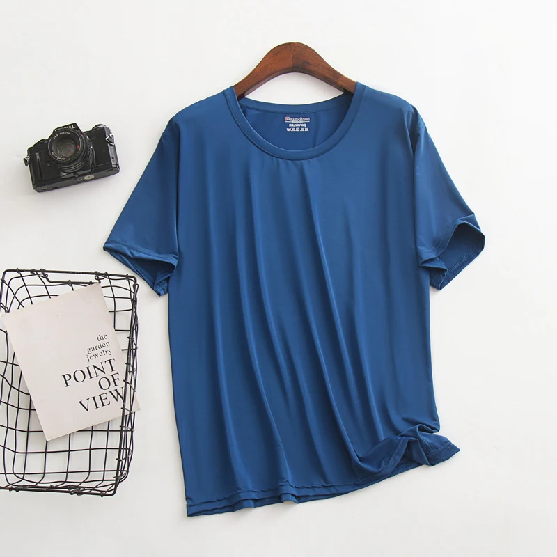 Large Size Mens O-Neck Undershirts Ice Silk Seamless Short Sleeves T-Shirt Male Summer Thin Fitness Body Building Underwear
