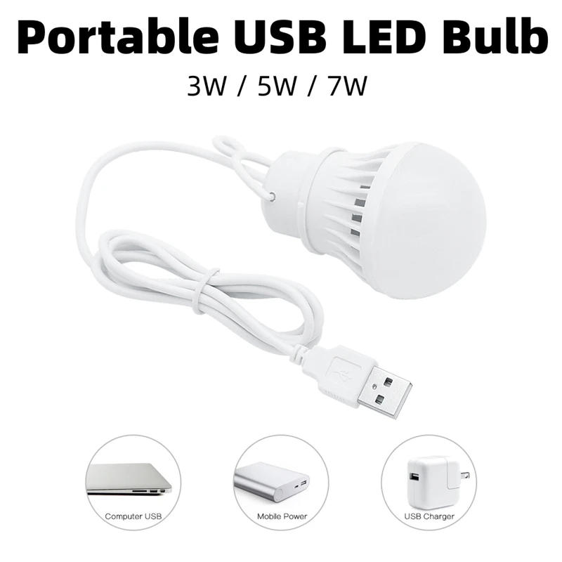 Feature: 1. With hook design, the light would be grasp at the wall, tree, rope or the tent. 2. It is great lightweight, you can take it to anywhere, very convenient. 3. The light is smooth and not glare. With the maximum brightness, you might by means of no skill worry the dark again. 4. The usb plug would be powered through all power connections with a usb output interface. 5. This moveable multifunctional smooth is fabricated from nice materials, enough to help your exterior and indoor activities, equivalent to camping, hiking, hunting, climbing, fishing, reading, etc. 6. Lanterns have vibrant shapes and have compatibility for various environments. Specification: Material: Plastic Light Source: LED Power Supply: USB Powered Power: 3W/5W/7W Light Color: White Features: With Hook Package Includes: 1 x USB LED Bulb