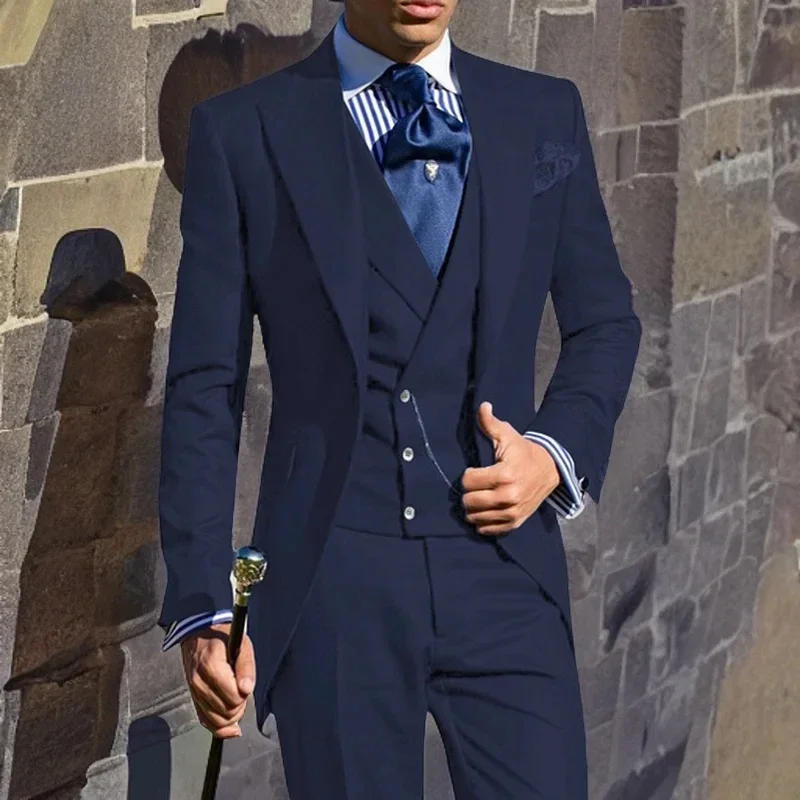 Luxury Tuxedo Navy Blue Suits for Men Single Breasted Peaked Lapel Slim Fit 3 Piece Jacket Pants Vest Tailor-made Suits for Men