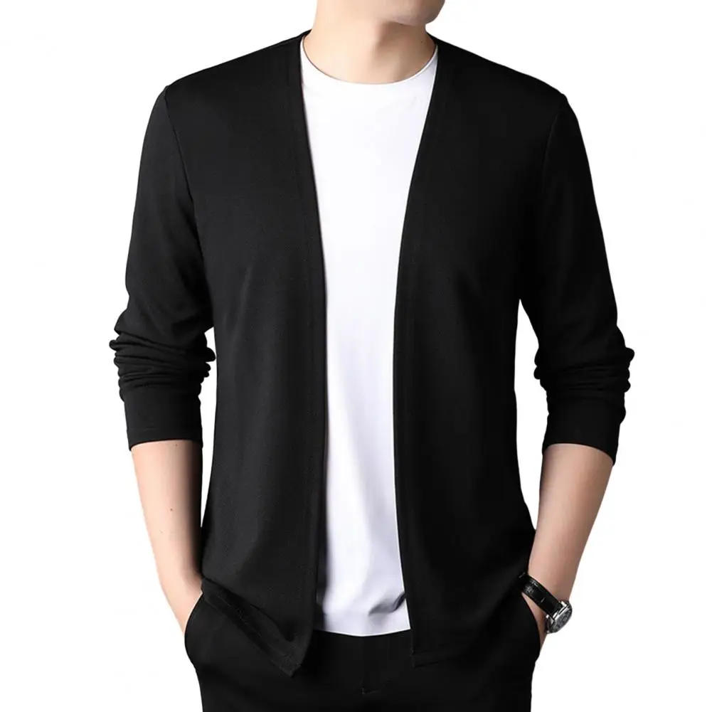 Men Knitted Sweater Solid Color Open Front Sweater CoatSlim Fit Male Casual Knitted Cardigan For Spring Autumn