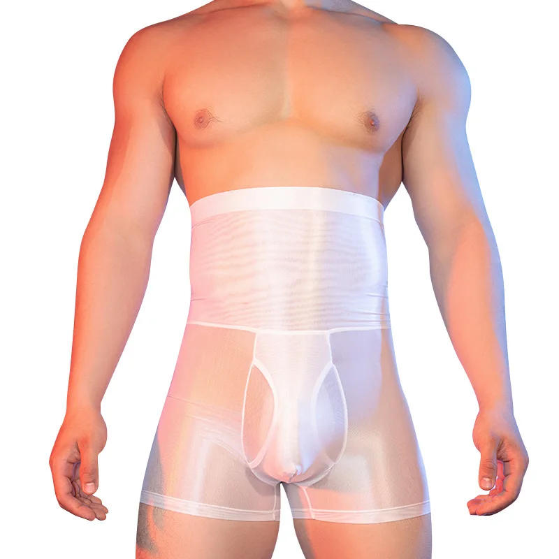 Men's Pants Boxer High Elastic Control Tummy Lift Butt Sexy Shorts U Bulge Pouch Hole Open Oil Shiny Shaper Exotic Man Lingerie