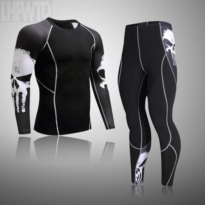 Men's Winter Compression Underwear Men Winter Thermal underwear MMA Bodybuilding T-Shirt Skull Rashgarda Leggings Tracksuit