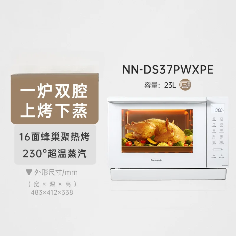 Rated voltage: 220 V ~ 50 Hz Chamber quantity /L: 23 Energy efficiency rating: 1 Net weight /kg: 13 Overall dimensions /mm (W x D x H) : 483 x 412 x 338 Overall dimensions /mm (W x D x H) : 483 x 456 x 338 (including handle) Cavity dimensions /mm (width x intensity x height) :315 x 350 x 220