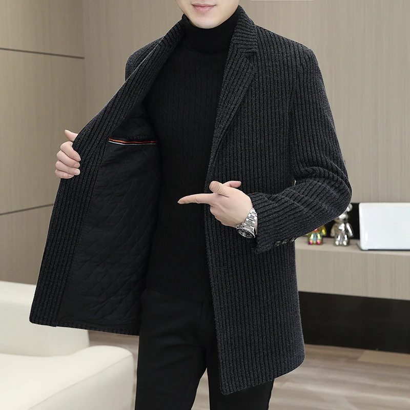 New Business Casual Italian-style Fashion Host Travel Plus Cotton Thickened Mid-length Wool Coat with All Casual Men's Coats