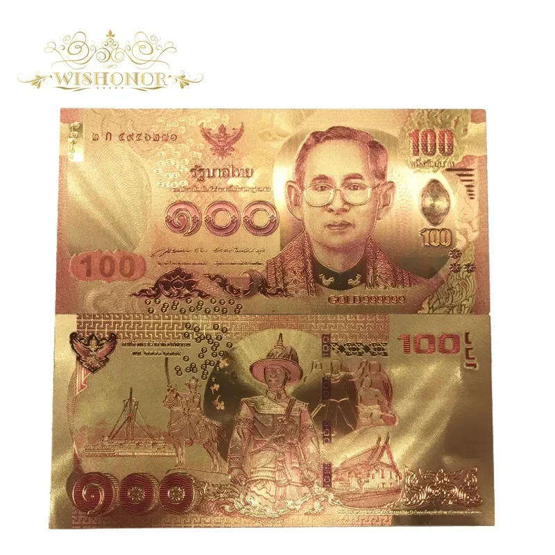New Thailand Banknotes Baht Bill Gold Foil Banknote With Colors Thailand 24k Gold Plated Note For Gift 10pcs/lot