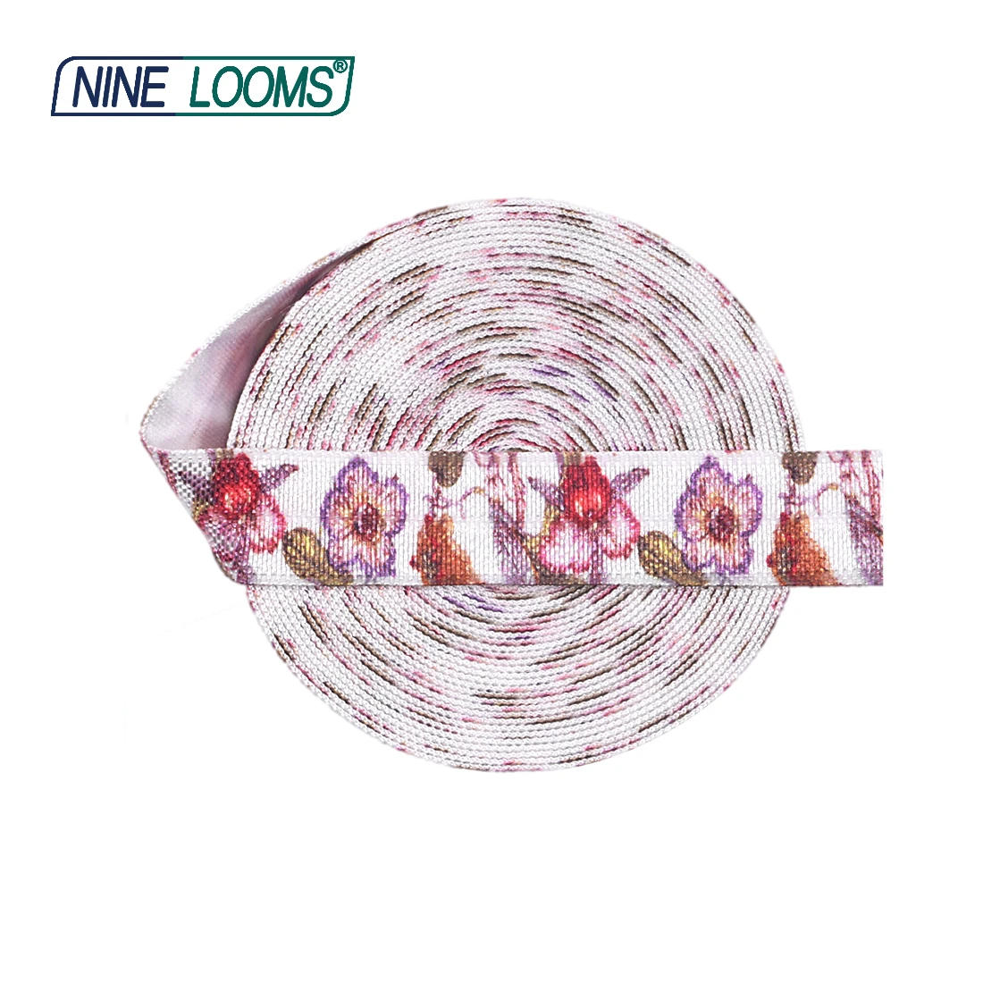 NINE LOOMS Print Fold Over Elastic FOE 5/8" 15mm Rainbow Floral Spandex Satin Band Hair Tie Headband DIY Sewing Trim 2 5 10 Yard