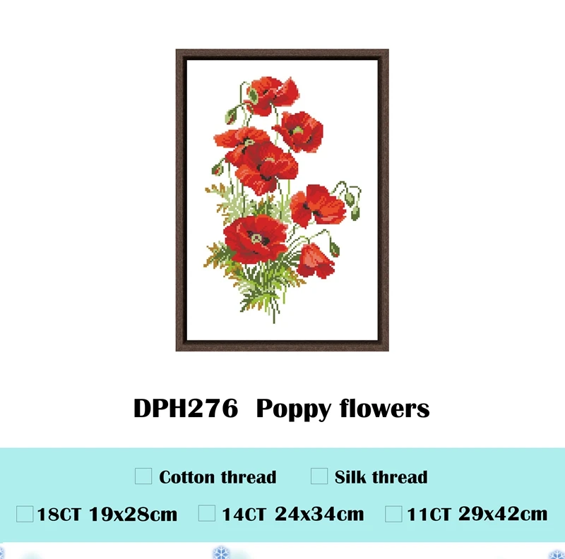 Poppy flowers cross embroidery kit flower pattern design 18ct 14ct unprint canvas Cross-stitch DIY needlework
