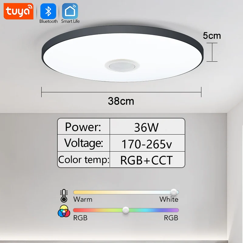 RGB Speaker Ceiling Light LED Lamp 30W 36W 220V APP TUYA Remote Control Play Music Audio Home Appliance Luster Indoor Decoration Product Information 1: 280/380mm 2: 30w/36w 3 Speaker configuration: three inch inside magnetic four ohm 5 watt four Input voltage: 170-265v five Lamp physique material: PC 6 Lamp bead type: 2835 SMD + 5050RGB unmarried chip lamp beads 7 Light color: white/warm/neutral/rainbow gentle eight Control type: wall management / graffiti APP, 2 remote control 9 Light body color: black/white Main Features -Bluetooth clever ceiling light, can be utilized with handheld remote control -through wifi or bluetooth to add lamps and lanterns, upload lamps and lanterns would be separately controlled, could be grouped control, you can also create a scene a key management -16 million types of shade adjustment, integrated dynamic mode -adjustable 16 million colors, adjustable color temperature (2700K-6500K adjustable), DIY color, adjust the color and brightness could be adjusted when the color and brightness of the sunshine and dark -Music mode function -Music function (the lamps substitute coloration in keeping with the melody of the music played in the phone, you could possibly want the color you want the lamps to change), you can decide to fade in and fade out, fade, skip, strobe -optional 20 bell built-in mode: (color gradient, crimson and inexperienced gradient, shade strobe, shade jump, etc) can be adjusted in the mode of brightness and pace Custom modes (select color, select gradient, flicker or strobe function, adjustable speed) -Timer switch, time postpone change -can be timed to show on and off the lighting fixtures (you can choose to slowly turn on/off the lights for 10 seconds to 30 minutes optional, would be delayed to show on/off the lights for 10 seconds to at least one hour optional) Product images