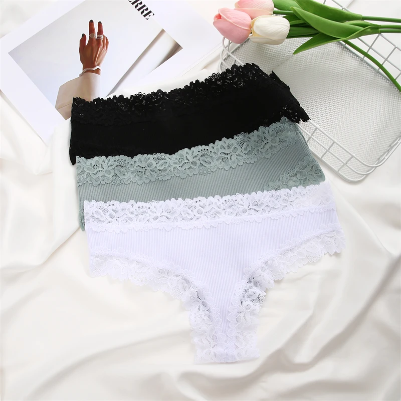 Sexy Lace Cotton Brazilian Pants Women Low Waist Panties Underwear Solid Color Ladies Briefs Lingere Underware Comfortable Women