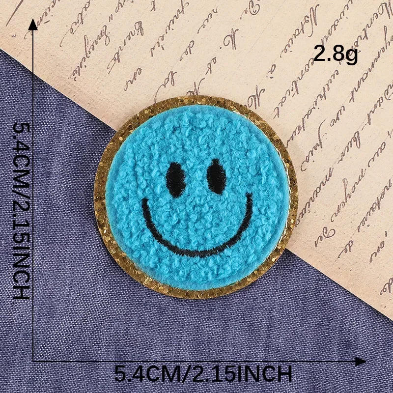 Smile Chenille Patches Gold Giller Iron on Patch for Clothing Towel Embroidered Badge Colorful Smile Applique for DIY Accessory