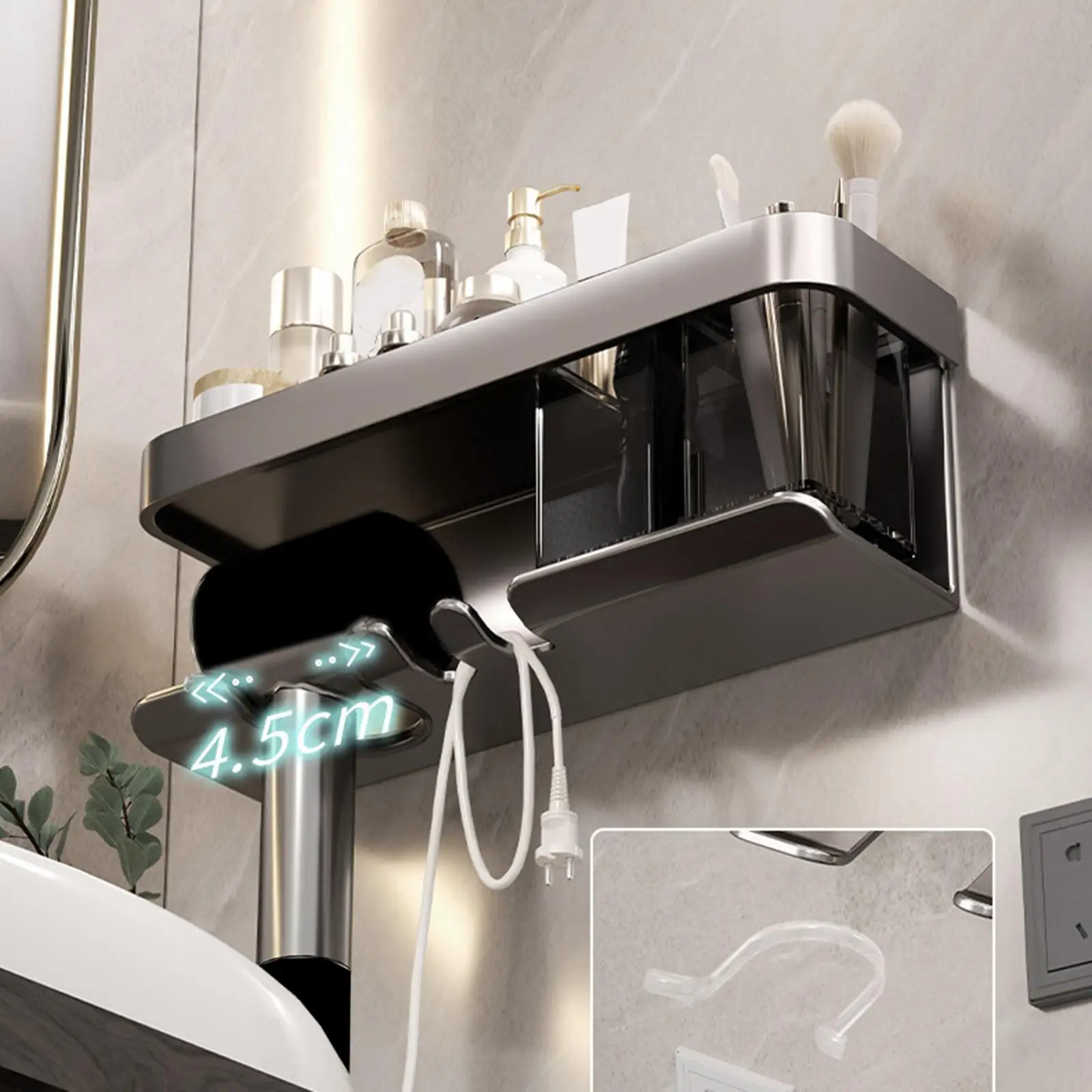 Wall Mounted Hair Dryer Holder Multipurpose Detachable Bathroom Blow Dryer Rack for Hotel Wall Barber Shower Room Home