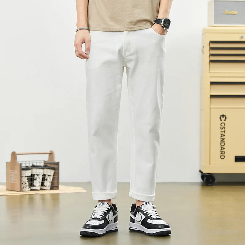 White Summer Thin Denim Trendy Slim Fit Loose Casual Stretch Pants