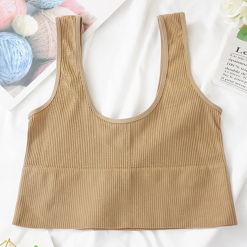 Women Tops Seamless Bralette Tank Top Female Crop Tops Cami Underwear Scoop Neck Ribbed Basic Tee Sexy U Back Camisole