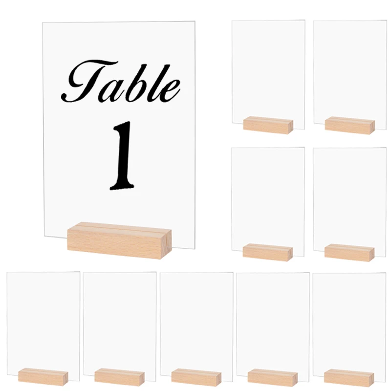 10Pcs Acrylic Wedding Table Number Sign DIY Blank Clear Display Signs with Wooden Base for Wedding Party Event Table Decoration