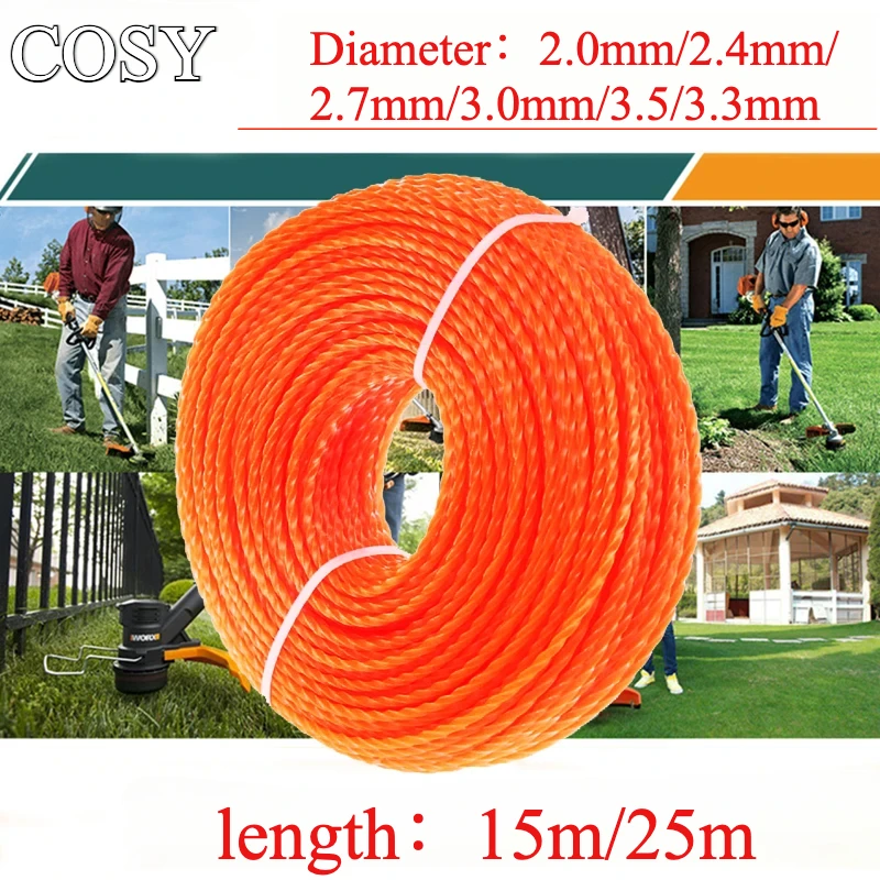 COSY Garden Tools 25m/15m*2.4mm/2.7mm/3mm/3.5mm/4mm Grass Trimmer Line Nylon Spiral Brush Cutter Rope Lawn Mower Head Accessory