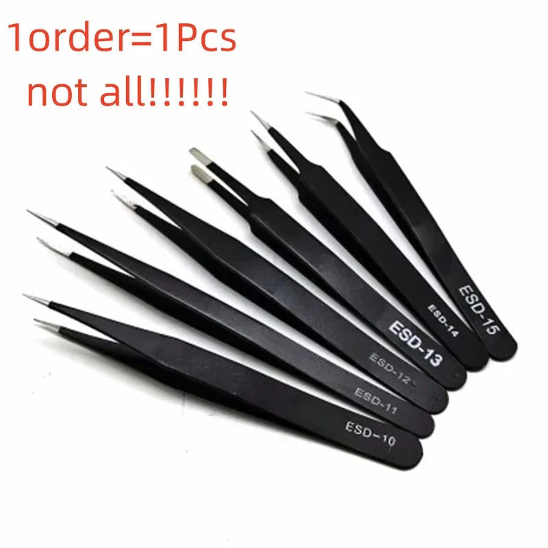 1 PCS ESD-10/11/12/13/14/15Anti-static Stainless Steel Tweezers Industrial Precision Curved Straight Tweezers Maintenance Tool