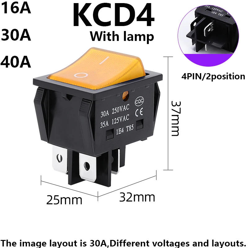 1 PCS,30/40A 250V AC High Current,ON/OFF,Special for Eelding Machine,KCD4,Sterling Silver Point,Rocker Power Button Switches
