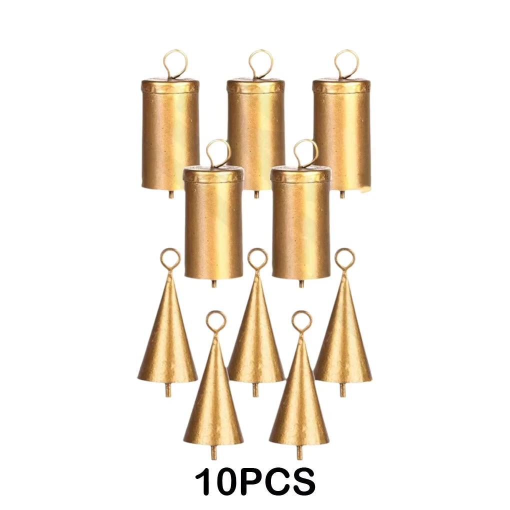 10PCS Christmas Ornament Bells Conical Barrel Shaped Retro Gold wind Chimes Wall Hanging Christmas Decoration Bell New Year Gift