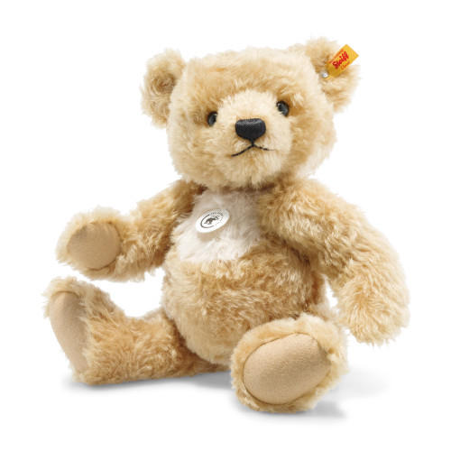 Steiff invented the jointed Teddy bear, and 14 decades later, no one makes them better. Our latest-fully posable, completely irresistible Teddy design is called Paddy. He’s a completely charming style which mirrors the look of a very similar bear in our 140th Birthday Celebration Collection for children, creating the perfect opportunity for collector to share their appreciation Steiff with a youngster in their life. Paddy’s light, golden-brown coat of finest mohair is perfectly complemented by a white, sewn-in chest piece which is reminiscent of a child’s bib. (Long-time Steiff fans will recognize this feature as an homage to our classic Zotty design.) He’s beautifully handcrafted from the finest materials by our amazingly skilled artisans. A perfect way to commemorate another Steiff milestone. Product Details: Collection: 140th Anniversary High-end Gifts Material: Made of the finest mohair Size: 14 inches Color: Blonde with white chest Eyes: With safety eyes Ear Tag: With stainless steel "Button in Ear" and 140th Anniversary chest tag Joints: 5-way jointed Pose: Sitting (this product does not stand on its own) Sound Device: None Care: Surface washable Country of Manufacture: Germany CAUTION! This product is not a toy and is intended for adult collectors only.