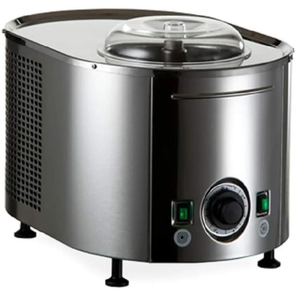 1-1/2-quart capability bowl freezes three quarts of ice cream or sorbet per hour Fully automatic: pour components into bowl, press two buttons Timer controls operation for different frozen confections Housing, bowl, paddle made of chrome steel for simple cleansing 12 inches wide, 11 inches high, 18 inches deep; weighs 38 pounds
