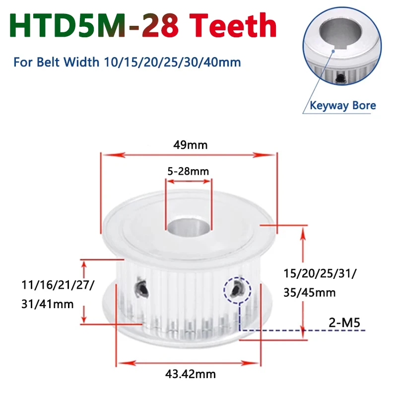 1pc 28 Teeth HTD5M Timing Pulley HTD 5M 28T Aluminium Alloy Synchronous Wheel for Belt Width 10/15/20/25mm Bore 5-28mm Pitch 5mm