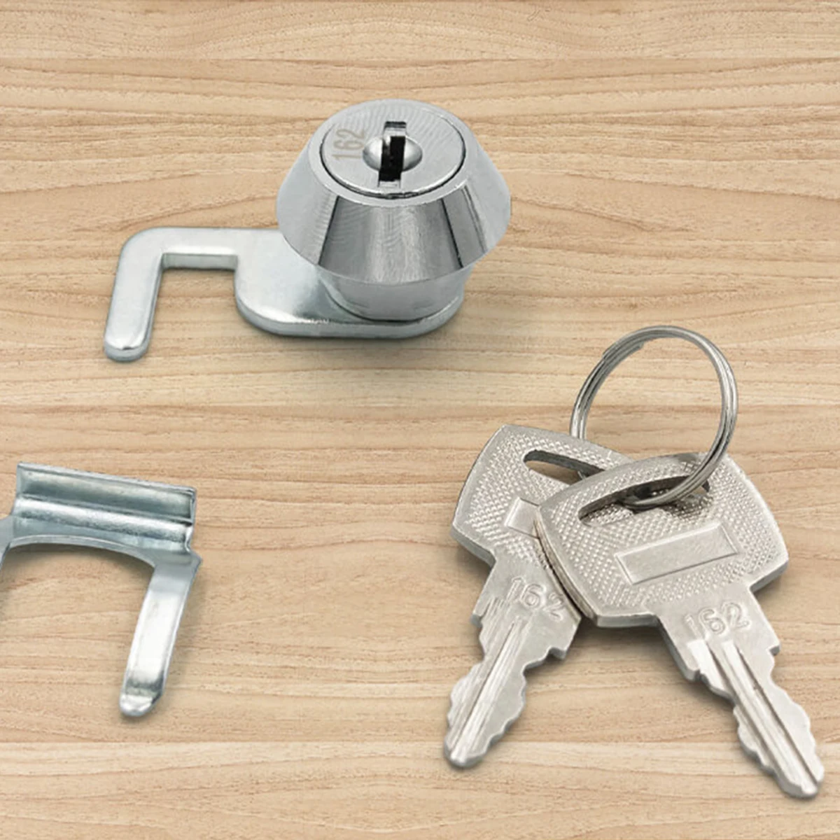 Specification:Lock Type: Cabinet Cam LockKey type: flat keyMaterial: zinc alloySurface treatment: chrome platingpacking list:1x lock body1x fixed card2x keysnotes:Conversion: 1 cm = 10 mm = 0.39 inches.There may be an error of 0 to 1 cm due to manual measurement. warn. Please check carefully before making a purchasing decision.Due to different monitors, the color of the product photo may differ from the actual color.