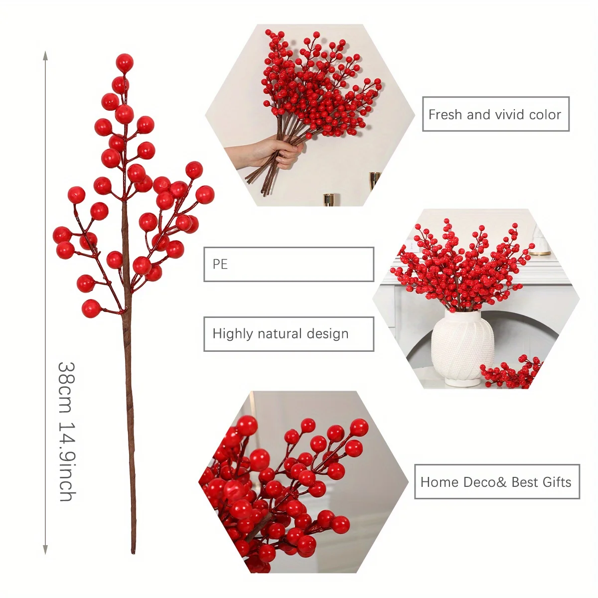 1pc/3pcs Artificial Red Berry Branches Fake Red Berry Branch PE Material Artificial Flowers Artificial Plants Home Decorations