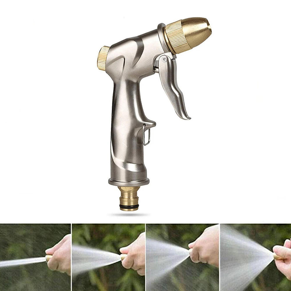 1Pcs High Pressure Water Spray Gun All Metal Plating Garden Hose Pipe Lawn Adjustable Mode Spraying Garden Irrigation Car Wash