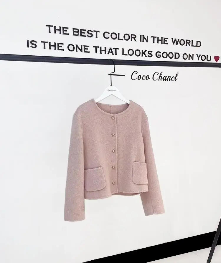 2023 Spring Short Double-Sided 90% Wool Lyocell Coats Women Solid Color Round Neck Single Breasted Loose Woolen Jackets
