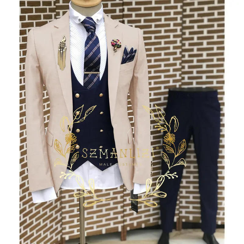 2023 Tailor Made Wedding Tuxedos For Groom 3 Pieces Slim Fit Men Suits Notched Lapel Male Party Fashion Costume Jacket Vest Pant