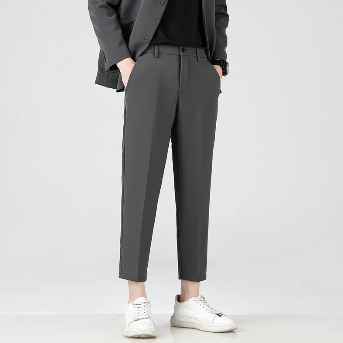 2024 Autumn/Winter Thick Men's Casual Pants Straight Loose Fashion Trend Business Versatile 9-point Suit Pants