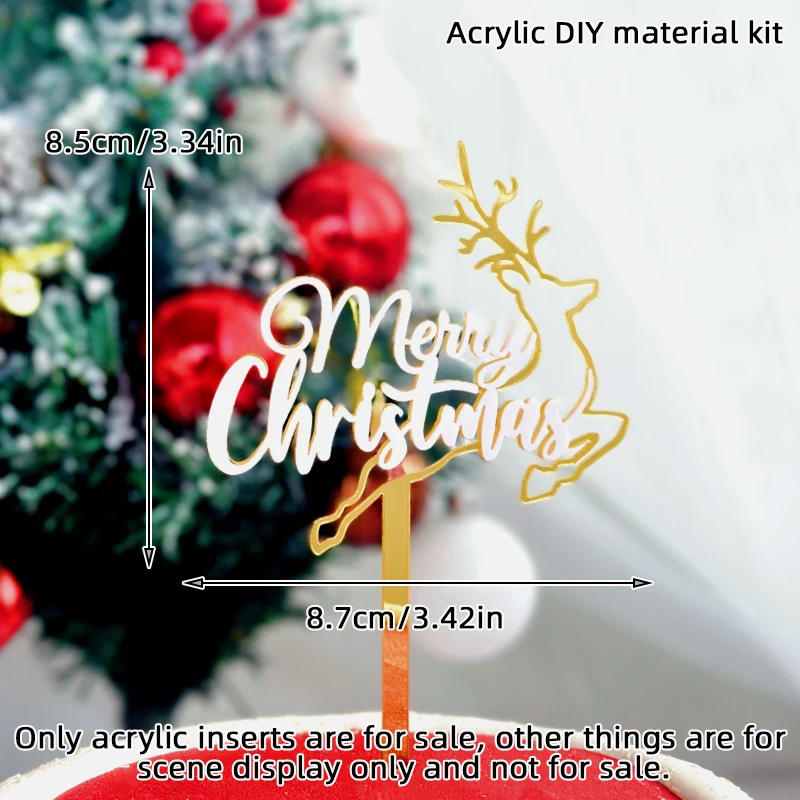 2024 Christmas Cake Toppers Acrylic Merry Christmas Cupcake Toppers Xmas Dessert Party Supplies for Happy New Year Decorations