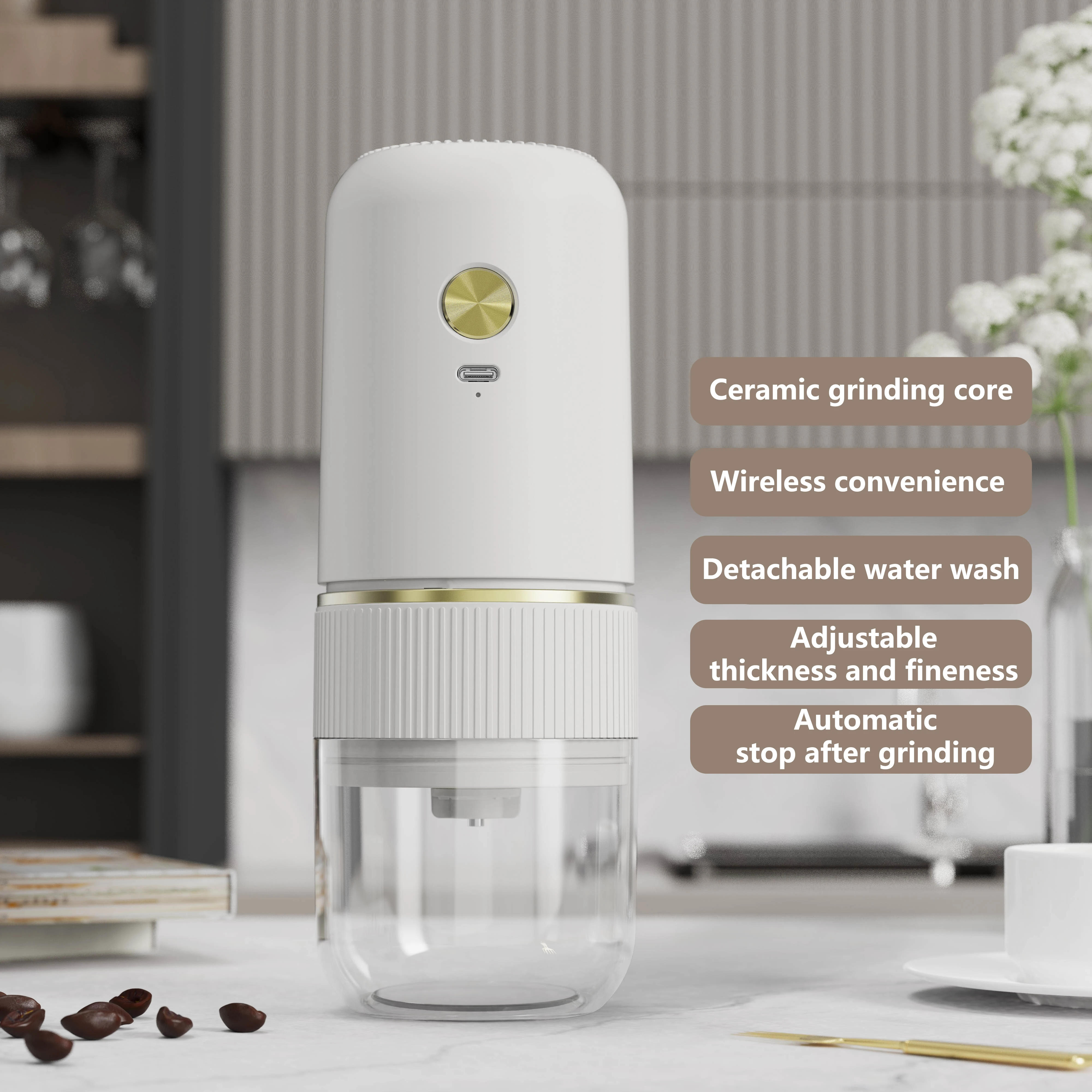 2024 New Electric Coffee Bean Grinder Ceramic Grinding Core Wireless Adjustable Automatic Electric Coffee Grinder Handheld Home