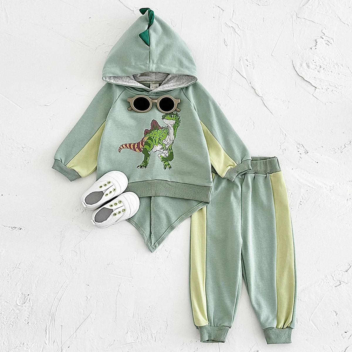 2025 Newborn Baby Boy Clothes Dinosaur Kids Clothing Sets Long Sleeve Cartoon Dinosaur Hooded Top+Pants Infant Toddler 0-3 Years