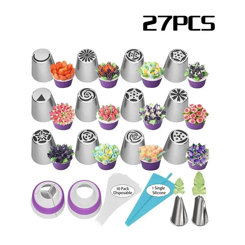 27pcs Russian Tulip Icing Piping Nozzles Pastry Cream Tips Stainless Stee Nozzleb Set Confectionery Bakeware Baking Cake Tools