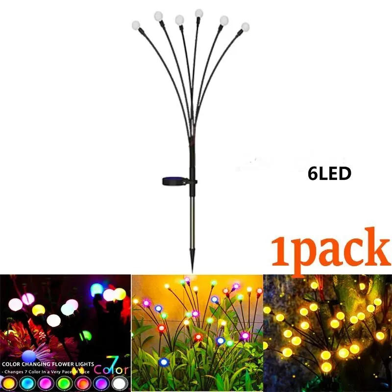 2pcs6/8/10 Lights Solar Lawn Lamp Garden Lamp, LED Wind-driven Firefly Ground Plug Lamp, Garden Ramadan Decoration Festival Lamp