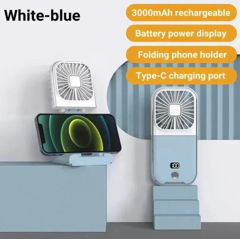 3000mAh Battery Powered Mini Portable Outdoor Handheld Fan Neck Fan USB Rechargeable 180° Folding Wireless Desktop Air Cooling